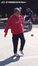 Zum Beispiel sportliche Begegnungen mit der chinesischen Bevölkerung im Park rund um den Himmelstempel in Peking. Man traf dort hunderte von Menschen, die sich gemeinsam körperlich betätigten - sei es in Gesellschaftstanz, durch Gymnastik mit Bändern, Schwerttanz, Tai Chi und mit dem Tai Chi-Ball. ...