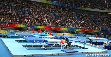 Eurotramp-Chef Dennis Hack (li.) selbst prüft die Qualität seiner Geräte vor Ort, wie hier bei den Olympischen Spielen 2008.