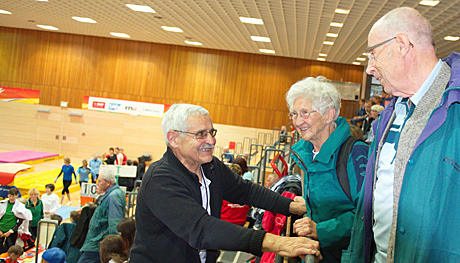 ... und der 'hessische Turnvater' Ernst Nießner (links) hatte den Argentinienbesuch damals organisiert! Und natürlich pflegen die beiden Hallenser Johanna und Gatte Gerhard Quaas solche guten, alten Turnfreundschaften! |
