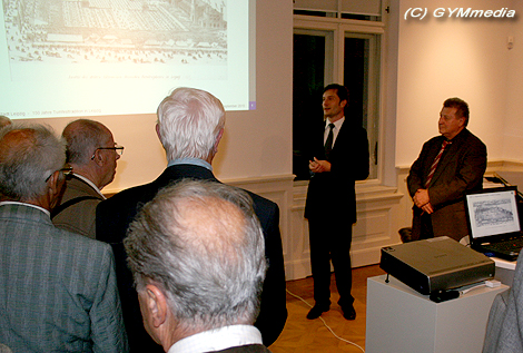 Ambitioniert: Heiko ROSENTHAL, Leipzigs Sportbürgermeister kennt und würdigt die historischen Turntraditionen seiner Stadt, in welcher auch 1921 die allerersten Deutschen Turnmeisterschaften stattgefunden hatten; rechts LTV-Präsident Joachim Drischka beim abendlichen Empfang in der festlichen Klinger-Villa in Leipzig Plagwitz.
